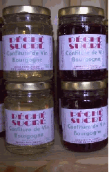 La confiture de vin existe depuis très longtemps . Les grands chefs cuisiniers ou pâtissiers l'ont remise à l'honneur en l'introduisant dans leurs préparations suscitant ainsi un engouement chez les amateurs . Le vin est traité comme un jus de fruit , il est réduit éliminant ainsi l'alcool , puis sucré et additionné de pectine de fruit pour obtenir une gelée . Cette recette permet de mettre en valeur tous les arômes du vin (fruits rouges pour la confiture de vin rouge , saveur plus acidulée pour la confiture de vin blanc ). Pouvant être dégustée au petit déjeuner , on l'utilisera avec bonheur dans maintes préparations culinaires . Servie nature en accompagnement de gibier , foie gras ... Pour la liaison de toute sauce à base de vin : meurette , boeuf bourguignon ,poulet à la Gaston Gérard ... En dessert comme nappage de tartes , accompagnement de crêpes ou bien encore dans la préparation de pommes cuites au four ... La qualité d'un tel produit dépend , outre le savoir faire , du choix des vins utilisés que nous sélectionnons parmi les meilleures cuvées des divers terroirs . |
