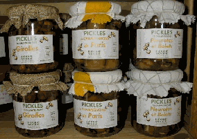Pickles de Champignons Champignons de Paris Pleurotes et Bolets Girolles Préparation de Champignons à l'aigre doux A utiliser comme les cornichons, en accompagnement des charcuteries, mais aussi à l'apéritif ou dans une salade après les avoir égouttés. |