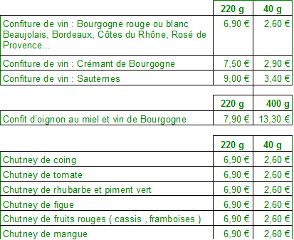 - CONFITURES DE VINS - CONFIT D'OIGNON - - CHUTNEYS - |