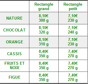 AU DETAIL : 3,90 € les 100 g EN SACHETS : 100 g = 3,90 € 180 g = 6,90 € |